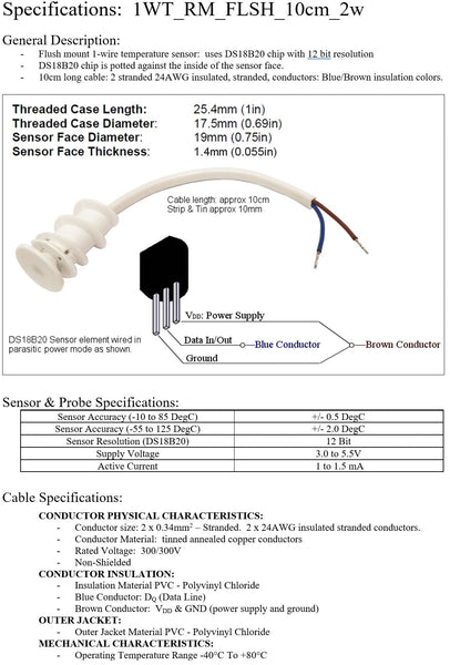 1WT_RM_FLSH_10cm_2w: Flush mount 1-Wire Temperature sensor